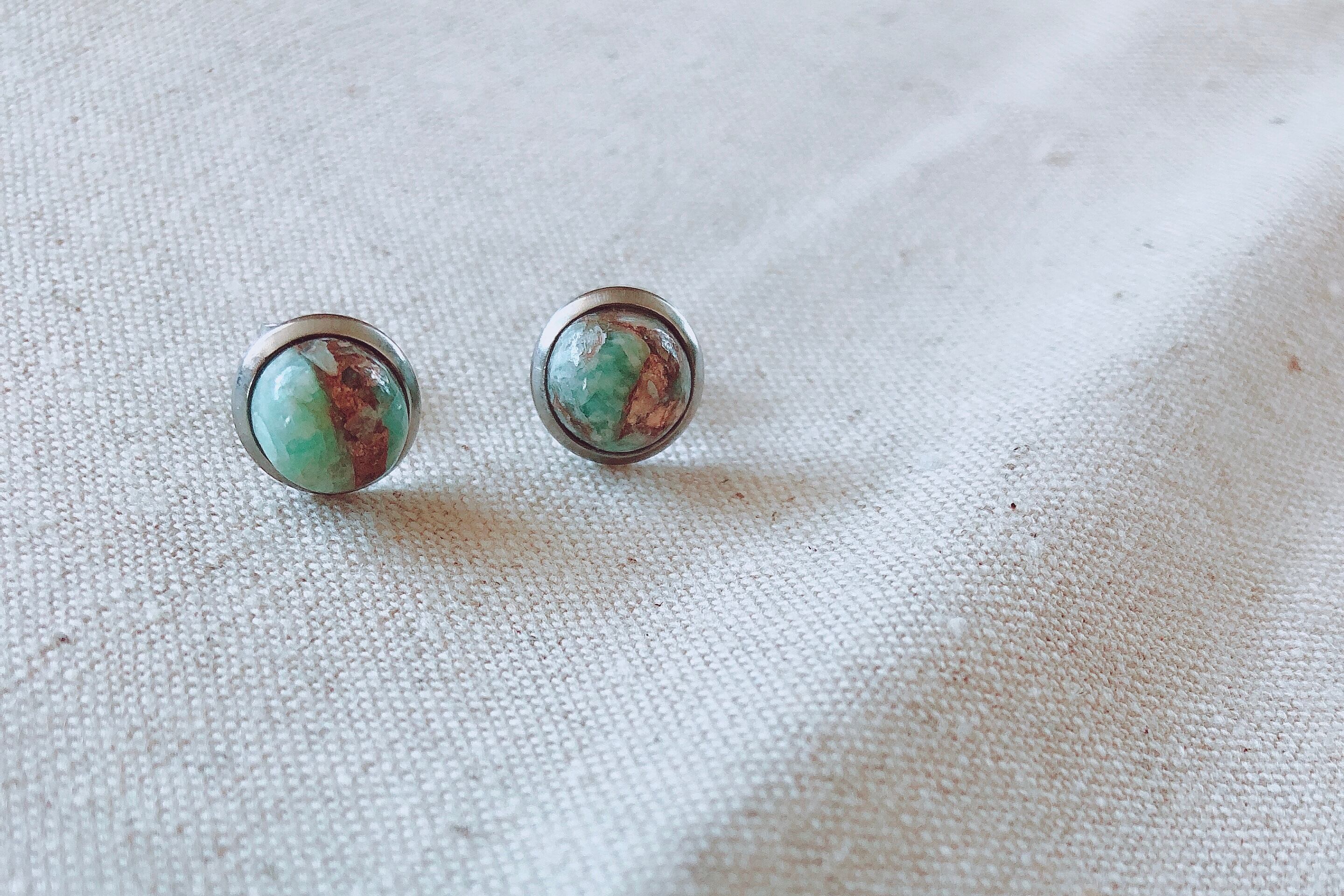 ランクAAAのコッパーアマゾナイト石を使った、ポストピアスになります。